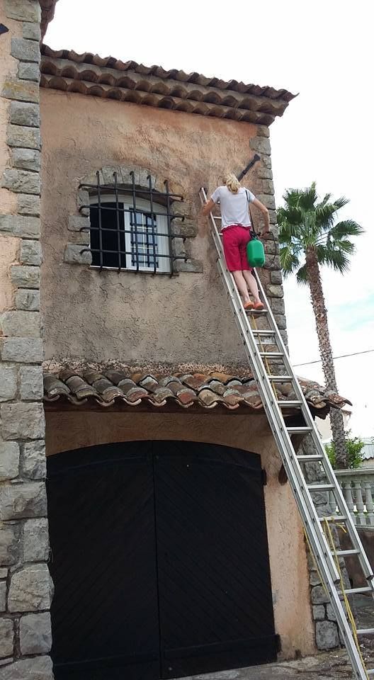 Mais attention, il n’y a pas que des plaisirs de bouche pendant cette saison. On profite aussi d’entretenir la bastide quand le soleil permet d’avoir de longues journées pour travailler à notre rythme. On passe donc un produit d’étanchéité sur la tour de la bastide ou bien encore, on nettoie les façades avec un produit en passant le karcher ensuite….