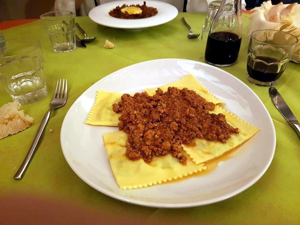 Les plats que nous avons dégusté: Spaghetti aux fruits de mer, 2 différentes acquacotta, Antipasti, bruschetta et Crocchè di patate, Ravioli à la truffes, Risotto aux gambas, Charcuterie...